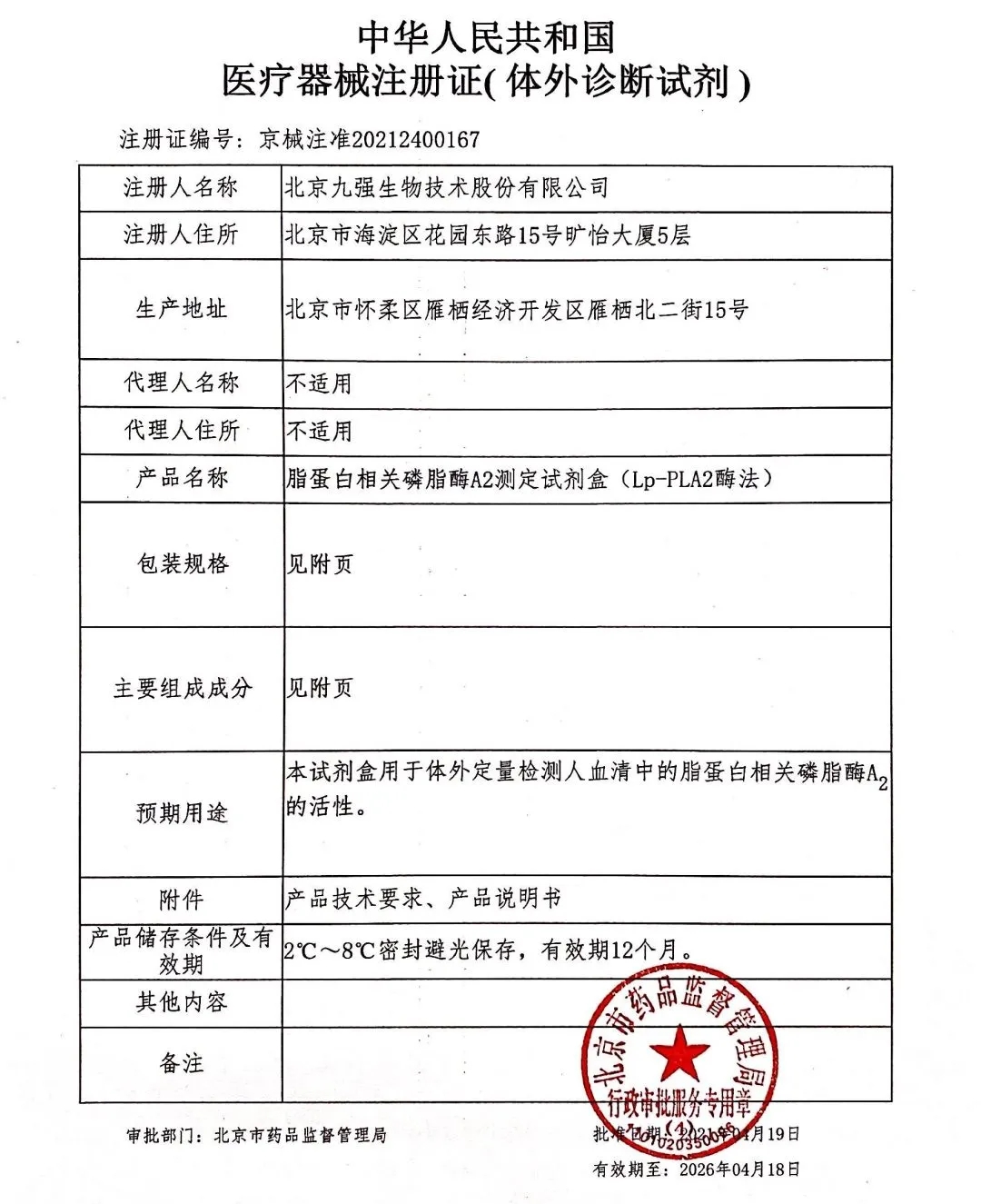 蓝冠娱乐官网生物顺遂取得北京市药品监视管理局揭晓的三项产品的《医疗器械注册证》:谷胱甘肽还原酶(液体)测定试剂盒(谷胱甘肽底物法)、脂卵白相关磷脂酶A2测定试剂盒(Lp-PLA2酶法)和胰淀粉酶测定试剂盒(EPS-G7法)。